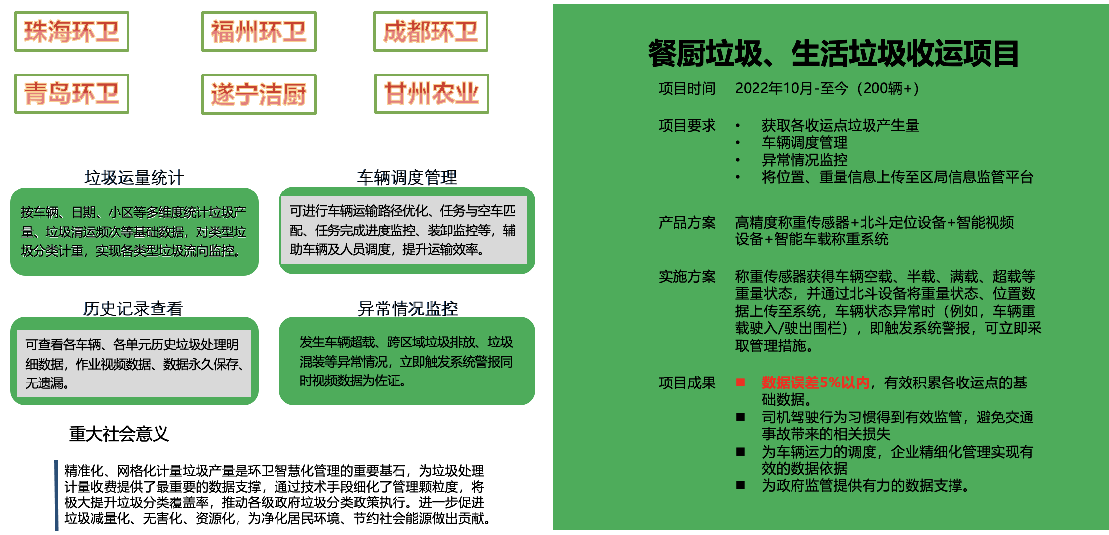 实现对环卫生活垃圾运输车辆的实时监控,确保车辆行驶路线和状态可随时掌握。精细追踪生活垃圾的流向,有效防止垃圾非法倾倒和违规转运。建立完善的运输车辆安全监测体系,对车辆故障、超速、疲劳驾驶等安全隐患进行及时预警,降低交通事故发生率;构建数据管理与分析平台,使决策的科学性和准确性提升。